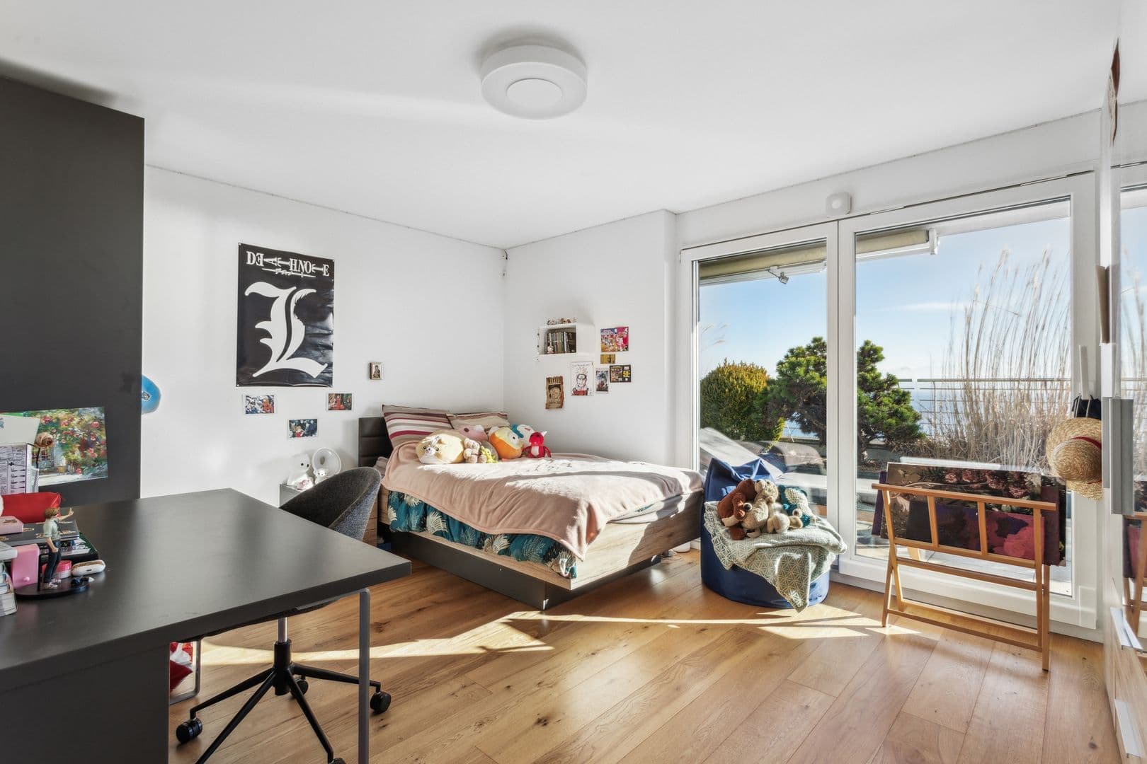 Le bien a fait l'objet d'une belle rénovation en 2022. Il se distingue par une magistrale pièce de réception d'environ 90 m² avec cheminée à l'éthanol. Baignée de lumière naturelle, cette vaste pièce de vie s'ouvre sur une spectaculaire terrasse plein sud de 76 m², offrant un panorama totalement dégagé sur le lac et les Alpes.