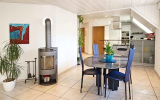 La maison, construite en 1988, a été régulièrement entretenue et améliorée : balcon et sols modernisés, remplacement des appareils (lave-vaisselle, machine à laver, sèche-linge, installation d’un système d’adoucissement de l’eau, nouvelles fenêtres PVC, transformation de la chambre de grenier, pose de boiseries de plafond, suppression de l’ancienne cheminée et installation du poêle suédois, révision de la chaudière, nouveaux abris de garage et rénovation complète de la cuisine. Au total, près de 182 000 CHF ont été investis dans l’appartement, ce qui garantit un bon niveau de confort, une technique à jour et un bien prêt à être habité sans travaux majeurs, dans un cadre idyllique au bord de l’eau