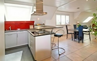 Cet appartement de 5.5 pièces, configuré en duplex mansardé, a été rénové avec goût pour offrir un confort moderne et chaleureux.