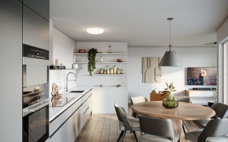 Chaque logement bénéficie d’une cave privative. La résidence propose également 14 places de parc intérieures à la vente, ainsi que de nombreux emplacements pour vélos, favorisant la mobilité douce.