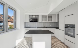 Cette petite copropriété de quatre logements garantit calme et intimité grâce à un ascenseur menant directement à l’appartement. Une grande cave complète ce bien, ainsi que deux places de parc couvertes en sus à CHF 30’000.- l’unité.