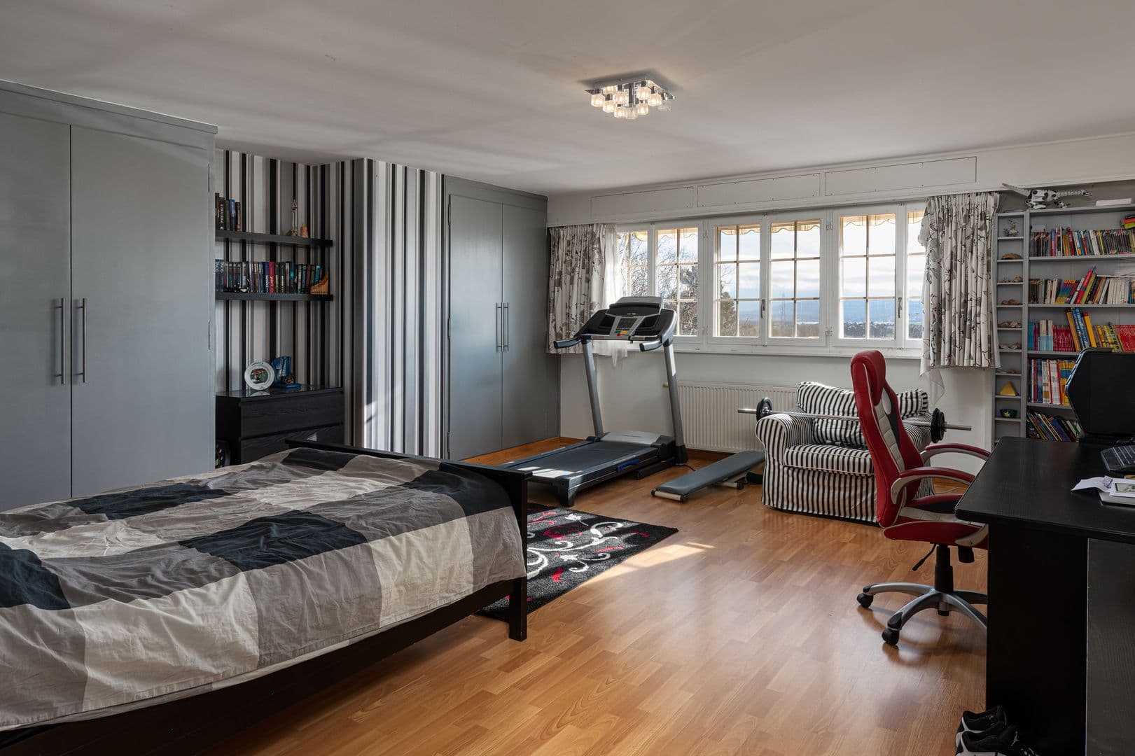 Elle est au bénéfice de deux suites parentale et de six chambres à coucher avec armoires encastrées ou salle d'eau attenante. Le séjour nous accueille avec son ambiance chaleureuse grâce à sa cheminée qui vous permettra de passer des soirées au coin du feu. Vous serez séduits par son grand jardin et sa piscine orientée plein Sud. Vous pourrez observer la vue sur le lac et les Alpes depuis certaines pièces. La cuisine entièrement équipée offre tout le confort nécessaire à son utilisation.