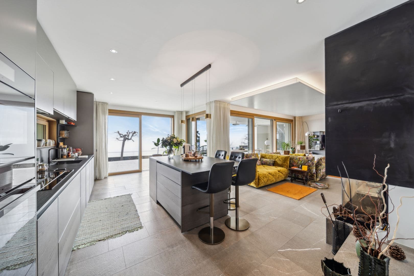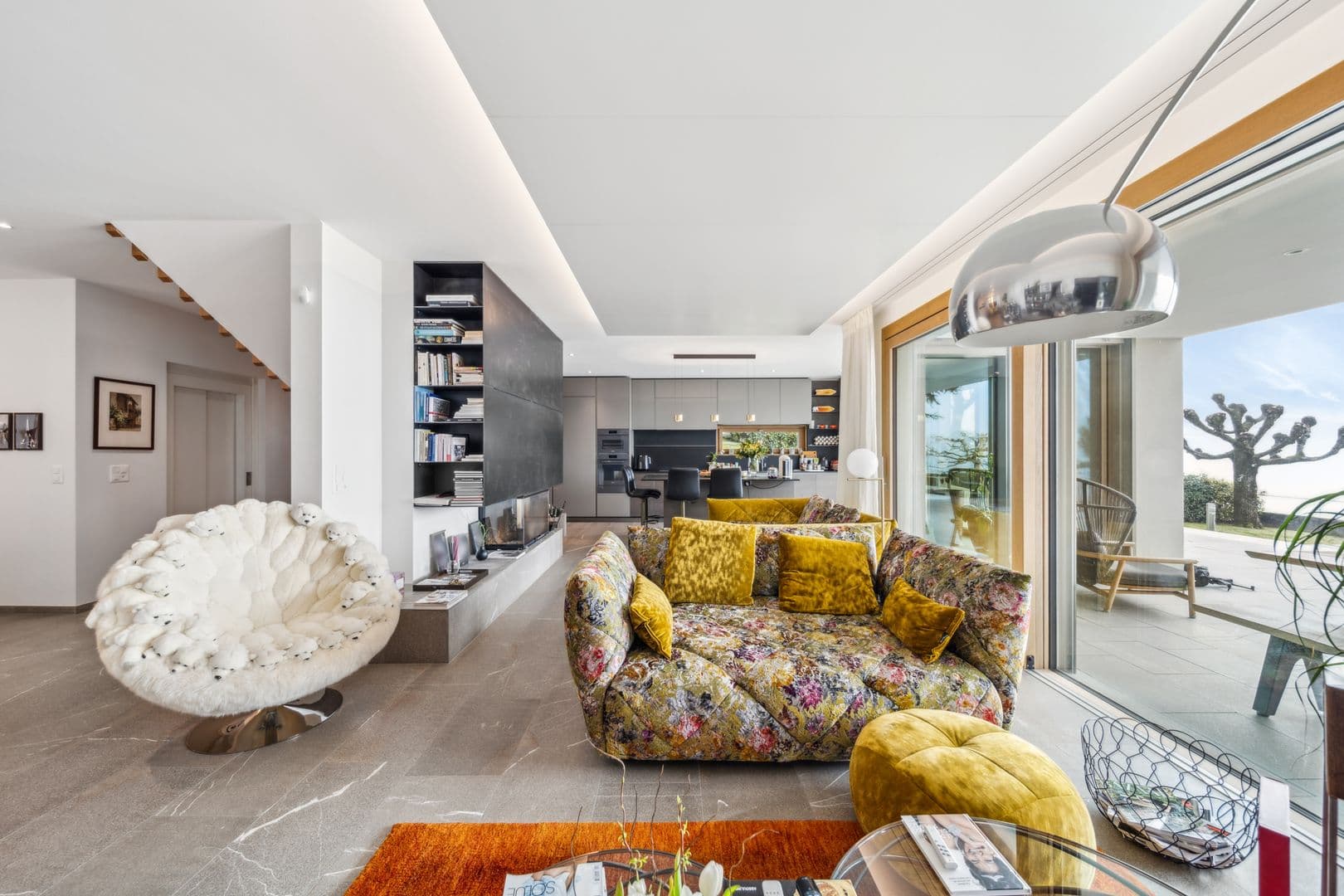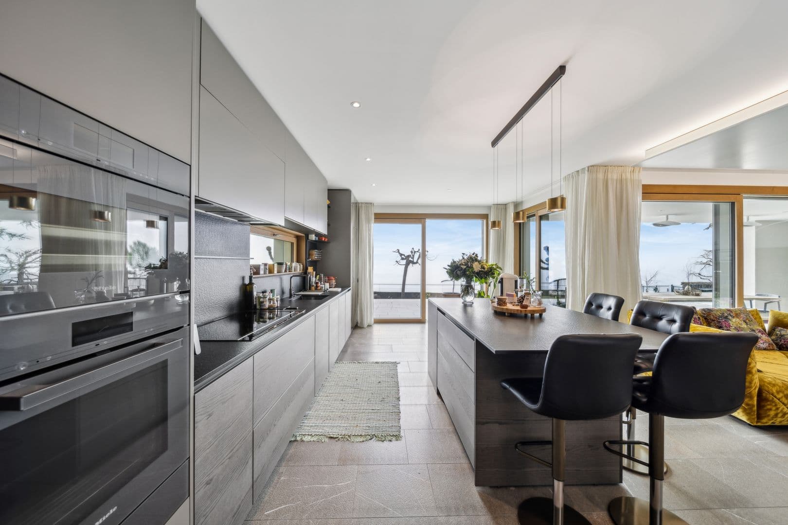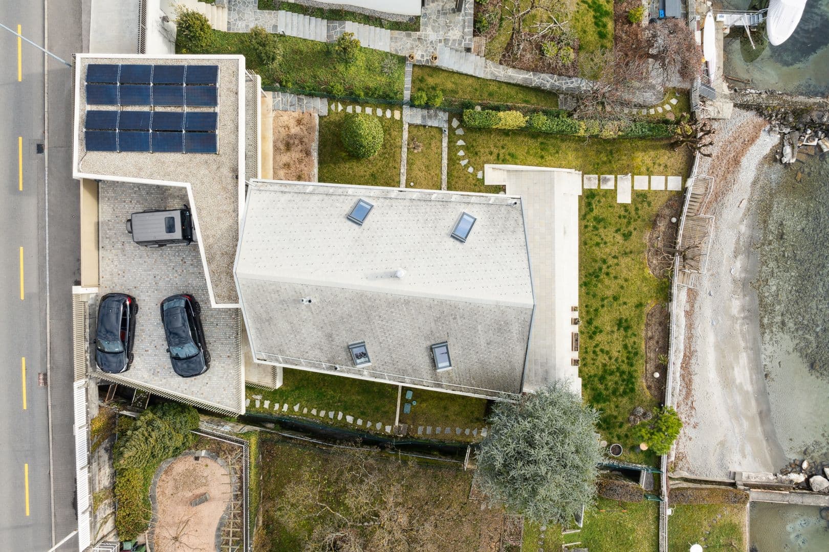 Située à Villette, cette splendide maison contemporaine, construite en 2020, offre 486 m² utile (410 m² habitables), répartis sur trois niveaux, avec ascenseur et un aménagement optimal pour un confort de vie inégalé. Véritable bijou, elle bénéficie d'une situation exceptionnelle au bord du lac, avec une plage privée, sans servitude de passage devant la propriété, et un permis de construire en force pour l’ajout d’un garage à bateau. De plus, elle dispose de six places de stationnement extérieures, dont trois couvertes, pour le plus grand confort de ses habitants.