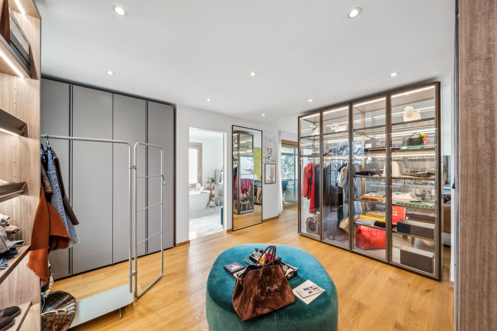 1er étage: La chambre parentale occupe toute la partie sud de la maison, avec un balcon couvert, un dressing spacieux et une salle de bains en suite. Vous y trouverez également une deuxième chambre et une troisième actuellement aménagée en dressing, mais disposant d’une salle de bains en suite, offrant ainsi une grande flexibilité d’aménagement.