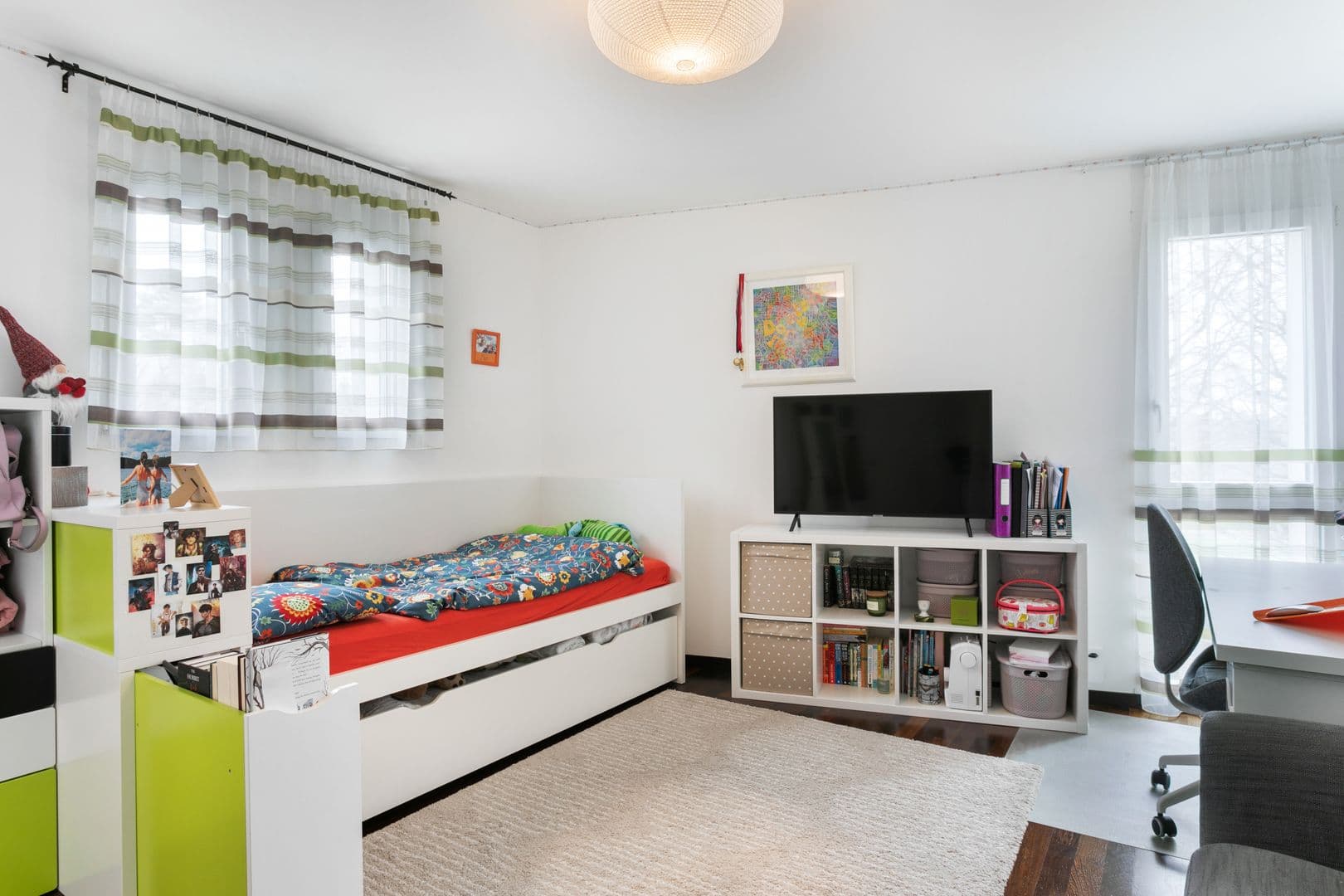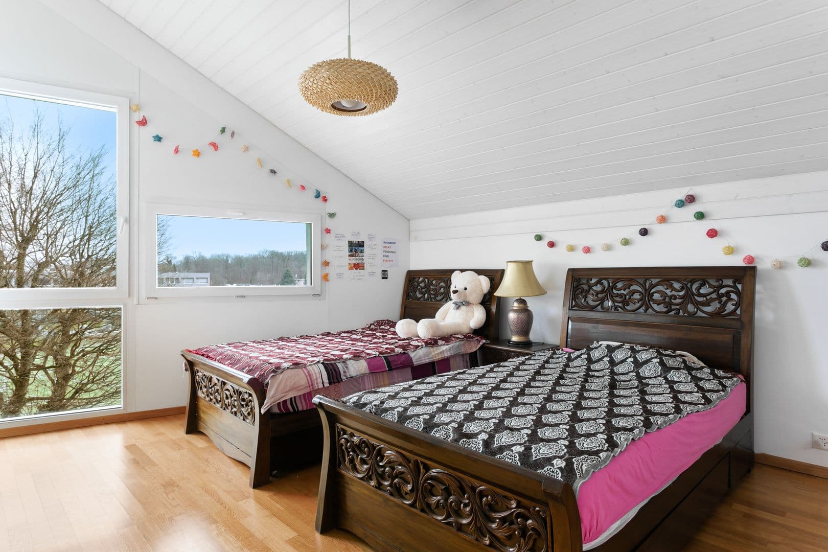 Érigée en 2004, cette propriété est implantée sur une parcelle de 1'100 m². Continuellement entretenue, cette dernière possède toutes les qualités recherchées par une famille. Elle est composée de 10 pièces dont 6 chambres à coucher, reparties sur quatre niveaux. Elle offre également un vaste espace de vie ainsi que des matériaux de qualité.