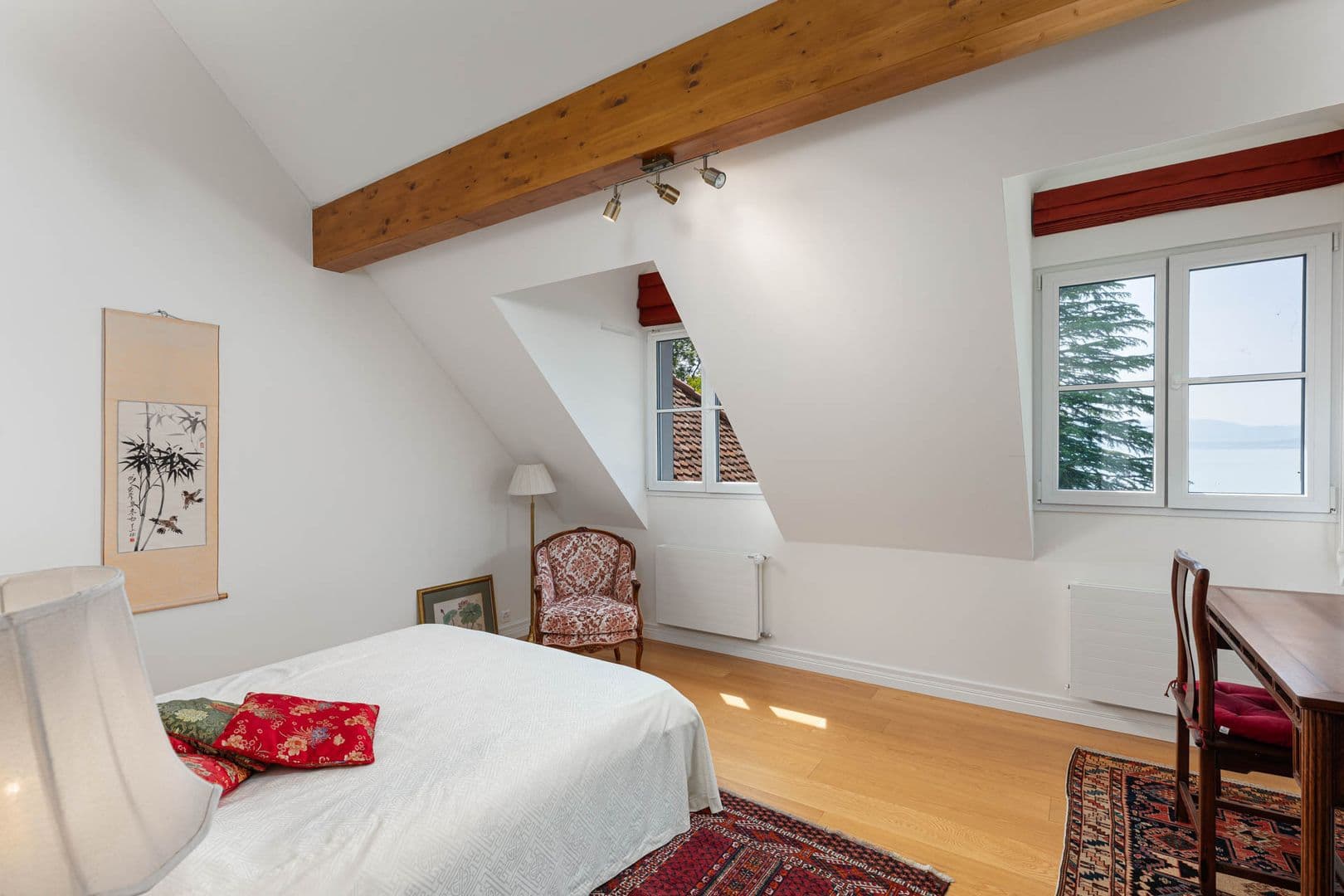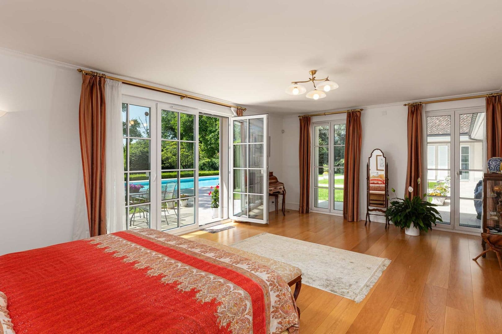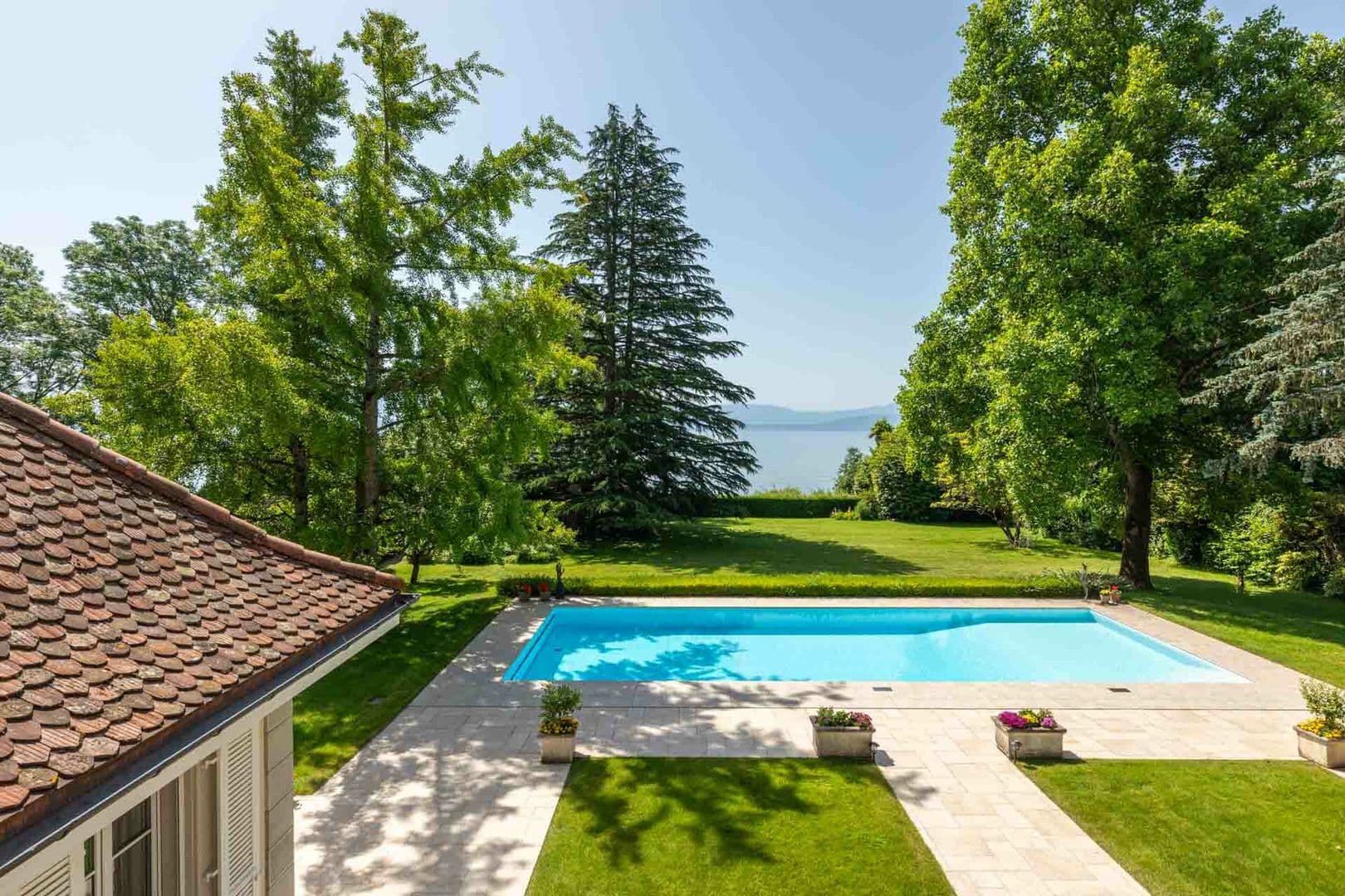 Vous serez séduits par des espaces de vie spacieux et baignés de lumière naturelle grâce aux nombreuses baies vitrées orientées plein sud. Depuis pratiquement toutes les pièces, vous aurez le plaisir de profiter d’une magnifique vue sur la piscine, le jardin et le lac Léman.