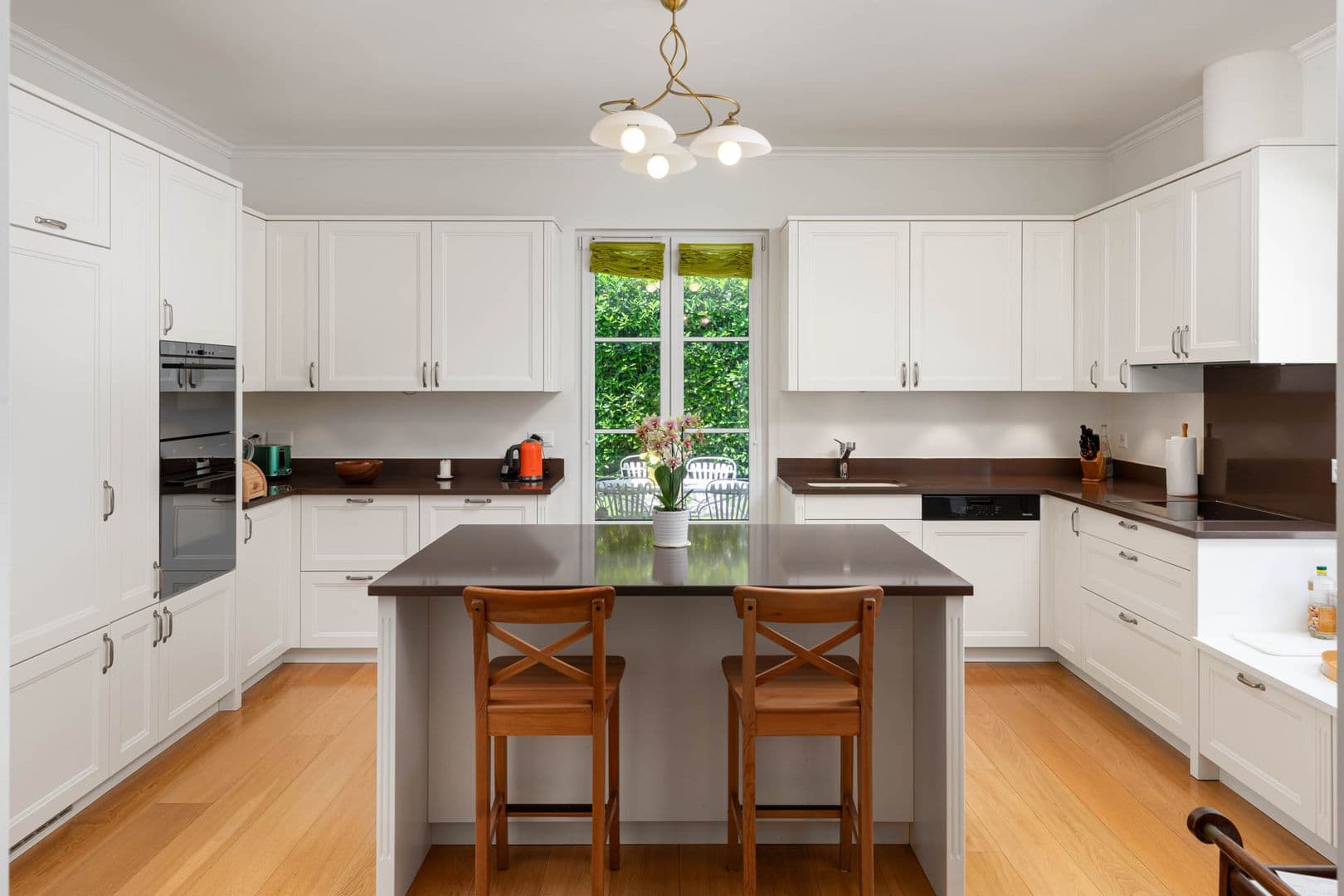 Le rez-de-chaussée propose une grande cuisine familiale avec îlot, un beau séjour agrémenté d’une cheminée et d’un plafond cathédrale, un bureau avec une bibliothèque intégré, une chambre à coucher en suite avec salle de bains et une chambre de Maître en suite avec salle de bains et dressing.