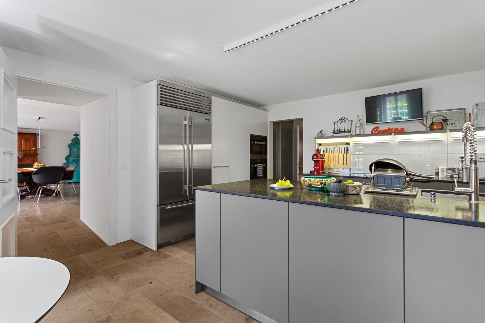 La propriété offre un cadre de vie indéniable dans un écrin de verdure, à l’abri des regards, et propose de grands volumes, de hauts plafonds et des pièces très spacieuses.
