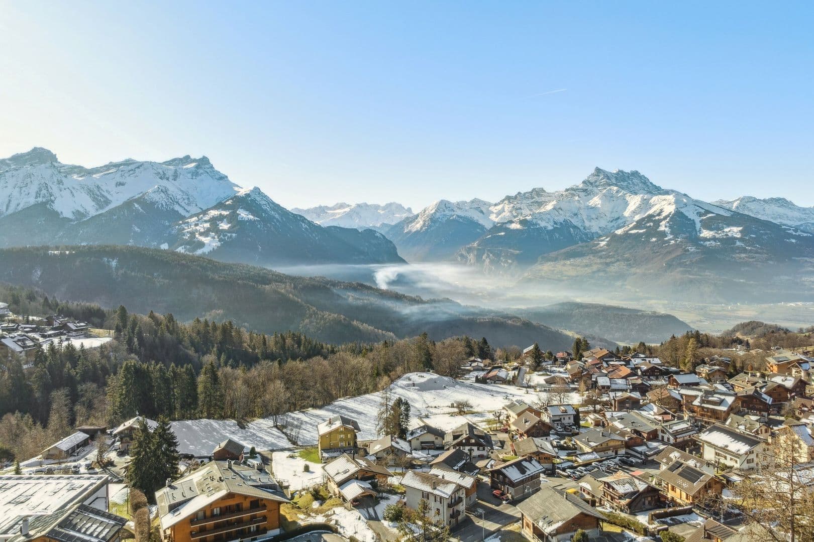 Le chalet La Colline est situé à Chesières en position dominante à proximité des transports et du collège Alpin Aiglon. Le centre de Villars-sur-Ollon à 800m est atteignable en tout juste 10min à pied. Orienté Sud-Ouest il bénéficie d'une magnifique vue sur les Alpes.