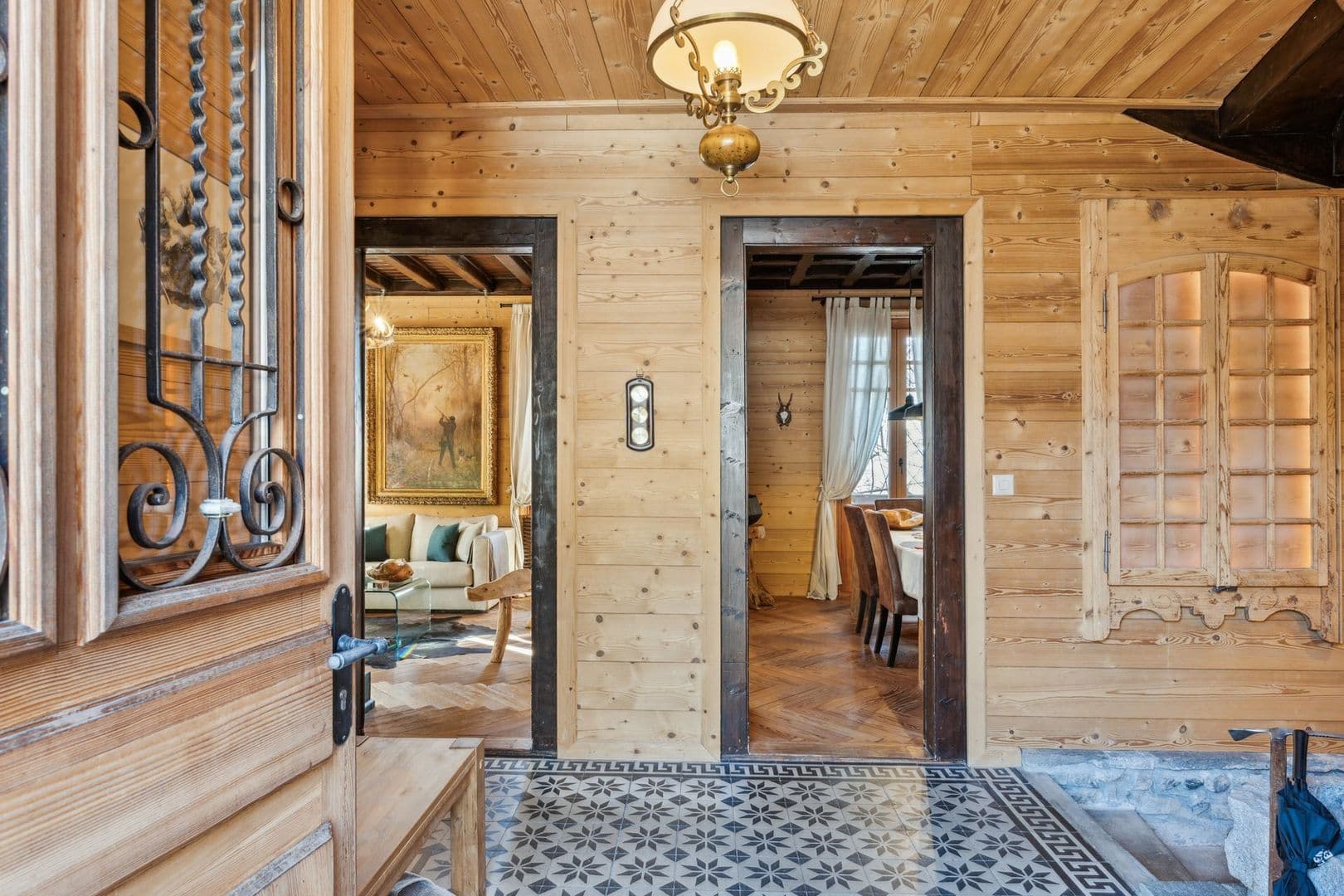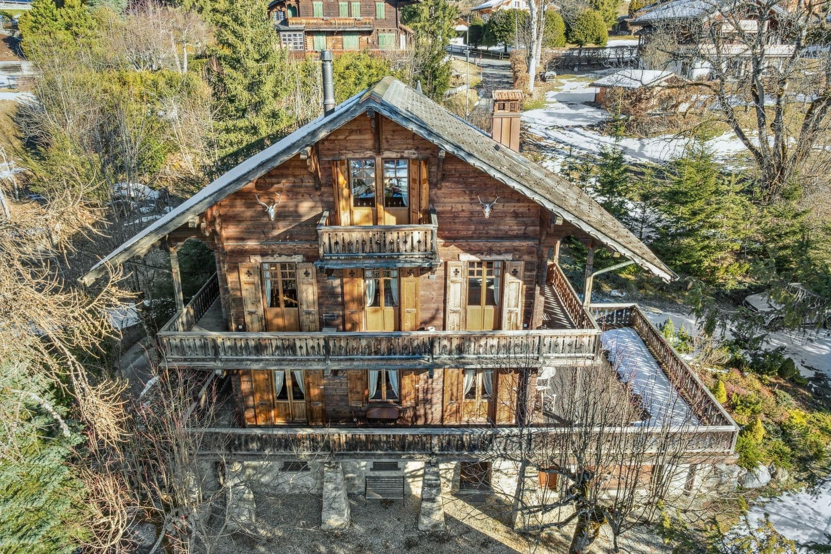 Construit en 1905 le chalet a été entièrement rénové avec la pose des fenêtres triple vitrage en mélèze ainsi que la toiture et le sablage au début 2024. Les nombreuses pièces d'origine ont été supprimées et converties en grands espaces avec une belle hauteur de plafond. Construit sur 4 niveaux, les terrasses sont soutenues par des piliers en pierres. Les finitions intérieures sont de qualité supérieure : boiseries, carrelage, pierre, tout en conservant certains éléments d'époque.