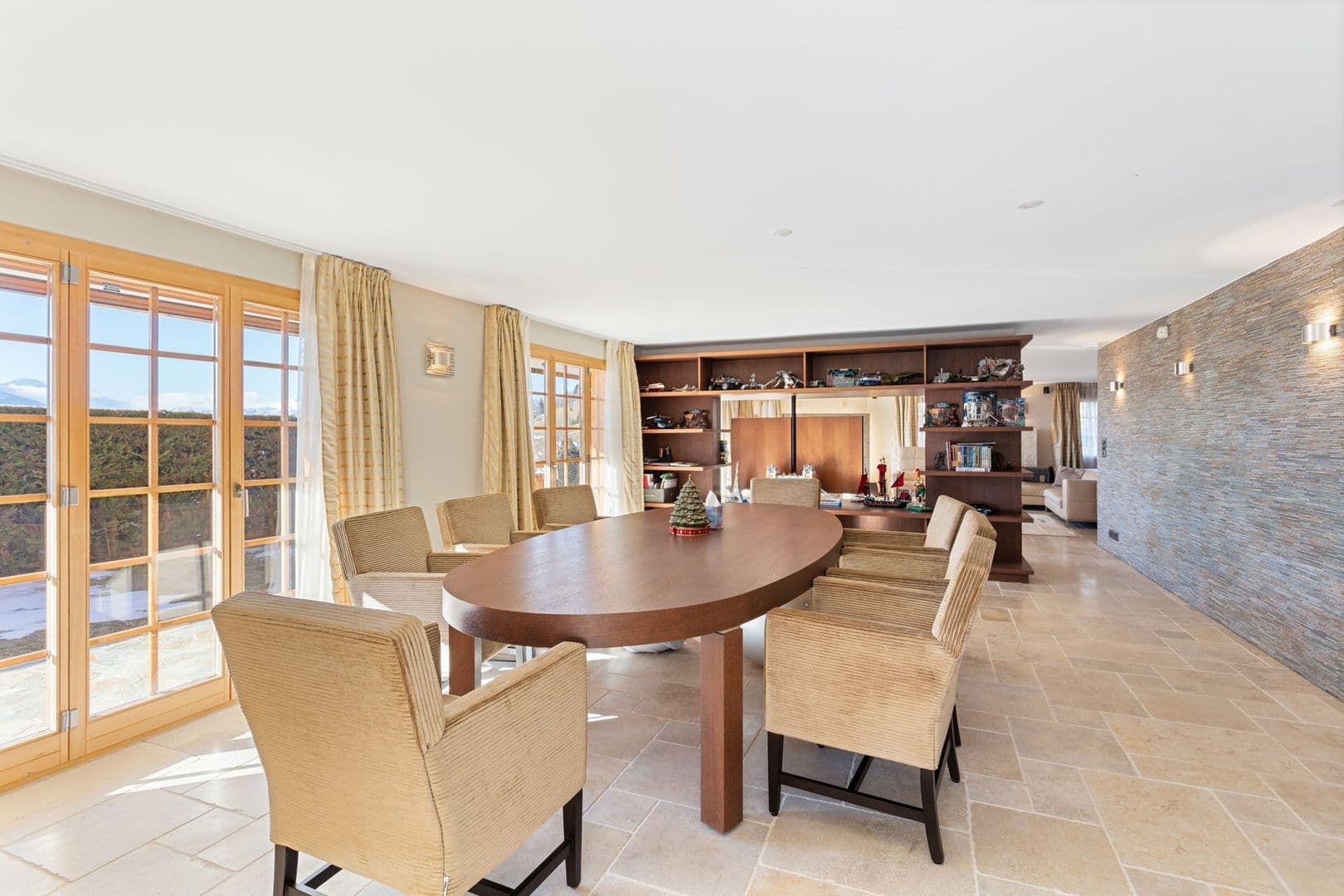 Plusieurs vastes doubles séjours et cuisines ainsi qu'un bureau, de nombreux dressings, 7 chambres, 8 salles d'eau et un toilettes visiteurs. Un ascenseur est à votre disposition pour faciliter les déplacements entre chaque étage. Avec de très beaux volumes, un ensoleillement optimal et une vue incroyable sur les Alpes, elle bénéficie de tous les atouts d'un bien d'exception au confort contemporain. Idéale pour 2 familles.
