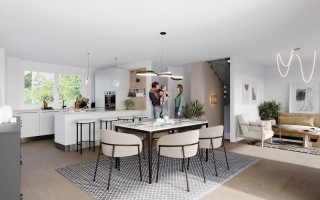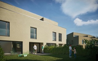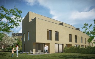 - 16 villas mitoyennes de 5.5 pièces, regroupées en blocs de quatre villas, avec des surfaces habitables de 150 à 173 m²