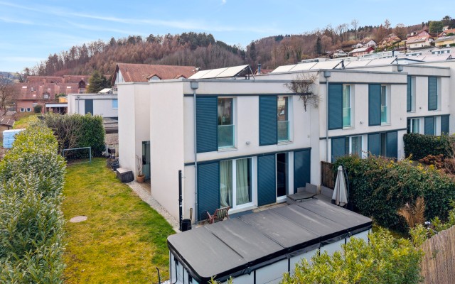 Les volumes généreux et les larges baies vitrées inondent les espaces de vie de lumière naturelle, créant une atmosphère chaleureuse et moderne. À quelques pas du centre, vous profitez d’un accès rapide aux commerces, aux écoles, aux transports publics et aux espaces verts, idéal pour une vie de famille harmonieuse.