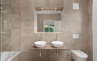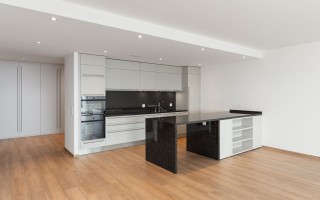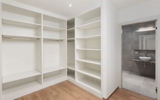Die Wohnung verfügt über drei Schlafzimmer, zwei davon en suite mit Ankleidezimmer und eigenem Bad/Dusche. Die 19m² große Hauptsuite bietet Komfort und Privatsphäre, während die anderen Zimmer, darunter eines mit 16m² und eines mit 13m², einen komfortablen Wohnraum für die ganze Familie oder Gäste bieten. Ein Duschraum mit Gäste-WC vervollständigt das Ensemble.