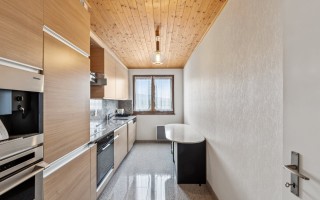Bereits beim Betreten der Wohnung werden Sie einen schönen Wohnbereich entdecken, der aus einem Wohn-/Essbereich mit Kamin und Zugang zum Balkon besteht. Die geschlossene und ausgestattete Küche, die 2004 komplett renoviert wurde, verfügt ebenfalls über einen Zugang zum Balkon. Ein Flur mit Wandschränken sorgt für zusätzlichen Stauraum, während ein großes Schlafzimmer und ein Badezimmer mit WC diese Ebene vervollständigen.