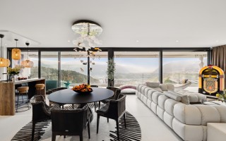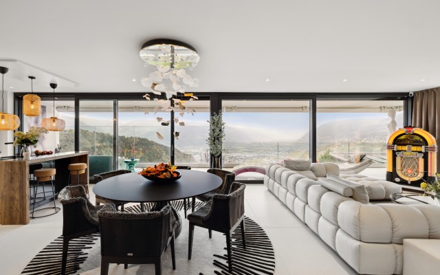 Diese 4,5-Zimmer-Wohnung zeichnet sich durch ihren großzügigen Raum, ihre warme Atmosphäre und ihr entschieden auf die Landschaft ausgerichtetes Design aus. Es handelt sich um eine außergewöhnliche Immobilie, die ideal für diejenigen ist, die modernen Luxus in einer einzigartigen Umgebung suchen.