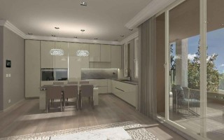 The apartment boasts generous living spaces with bright, well-distributed rooms. The entrance leads to a large living and dining area, enhanced by large windows that provide abundant natural light and direct access to a panoramic terrace. This outdoor space is perfect for relaxing and entertaining, offering open views of the surrounding greenery and the city.