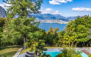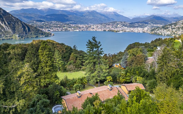 This extraordinary property is located in a unique and privileged location, immersed in a private park of over 6,000 m², finely manicured and embellished with large planted terraces, lawns and paved paths that wind between relaxation areas and spaces dedicated to wellness. The entire compendium provides spectacular panoramic views of Lake Lugano and the surrounding mountains, offering a setting of rare beauty and absolute tranquility.