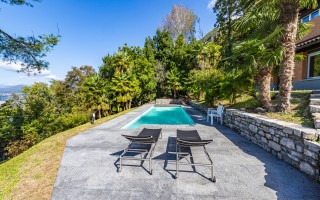 The residential complex consists of three distinct buildings: a main house designed by a renowned Ticino architect, a characteristic stone outbuilding and an accessory building housing a double garage, a wellness area with sauna and jacuzzi.