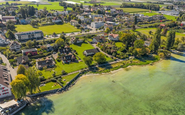 Unique building plot in a privileged lakeside location in Uttwil with unobstructed views over Lake Constance. The plot allows the construction of a representative villa with an area of approx. 407 m² and impresses with its slight south-facing position, the quiet, natural surroundings and direct access to the lakeside path.